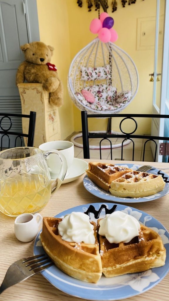 2020中壢新開餐廳【雨果鬆餅屋】CP值爆表的鬆餅/開幕期間原味鬆餅只要10元/現點現做不限時無低消/網美吊籃搖椅、熊熊、夢幻乾燥花牆