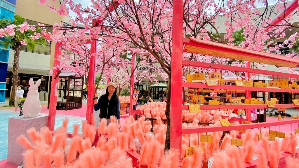 【2021林口三井outlet櫻花林】一秒飛日本/中央廣場櫻花粉色夢境/粉系白兔日式神社/極度夢幻浪漫登場